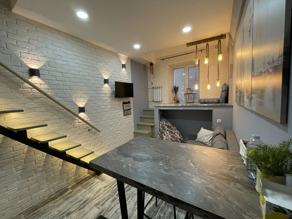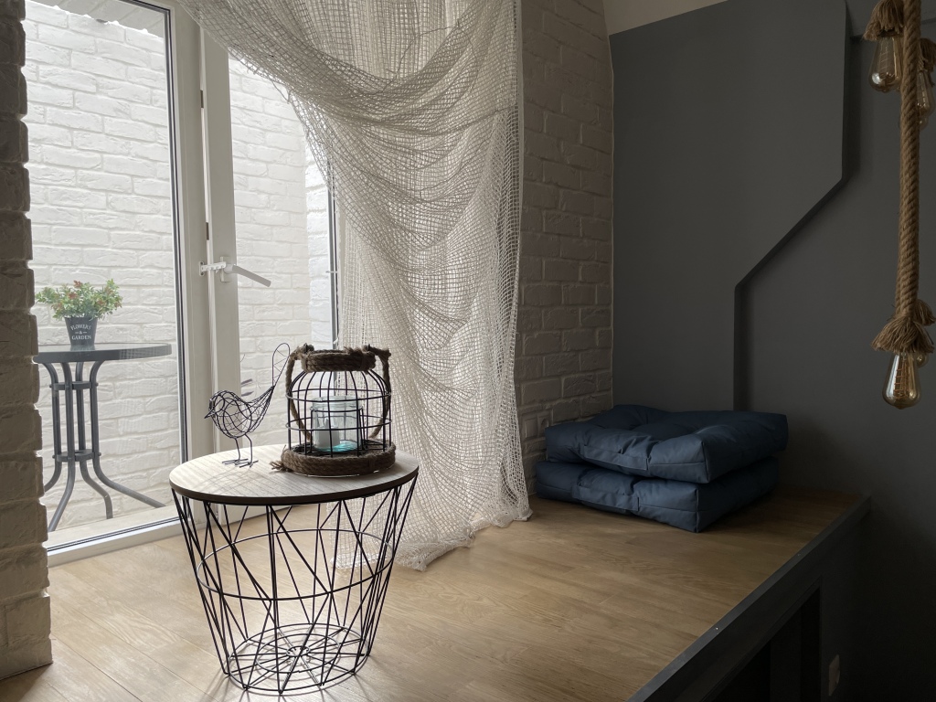Апартаменты находятся на нулевом этаже.