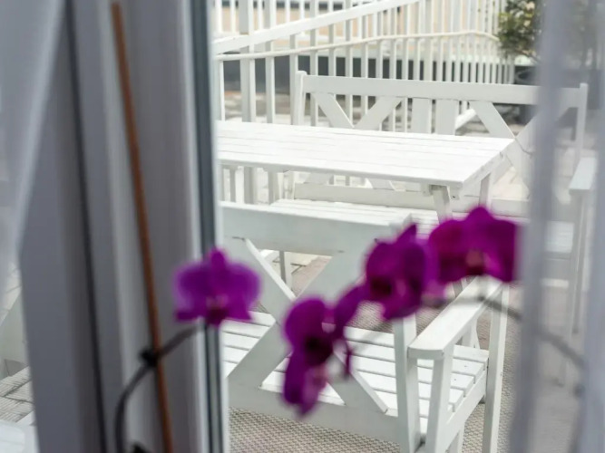 Апартаменты имеют свою террасу с качелями. Здесь гости могут отдохнуть после насыщенного дня, расслабиться с книжкой и кружкой кофе, а с утра позавтракать на свежем воздухе.