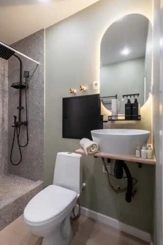 Номер уютно обставлен и оснащён необходимым, чтобы отдохнуть после долгого и насыщенного дня. Имеются телевизор. Оснащение зависит от выбранной категории номера.
