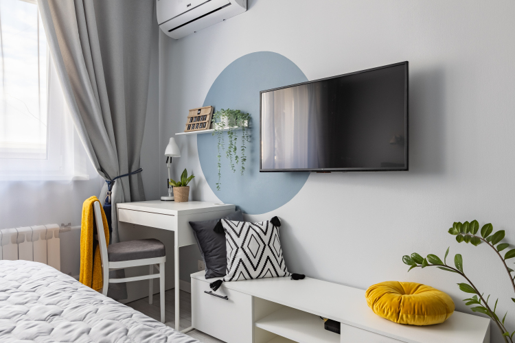 Для поддержания комфортной температуры комната оборудована кондиционером.