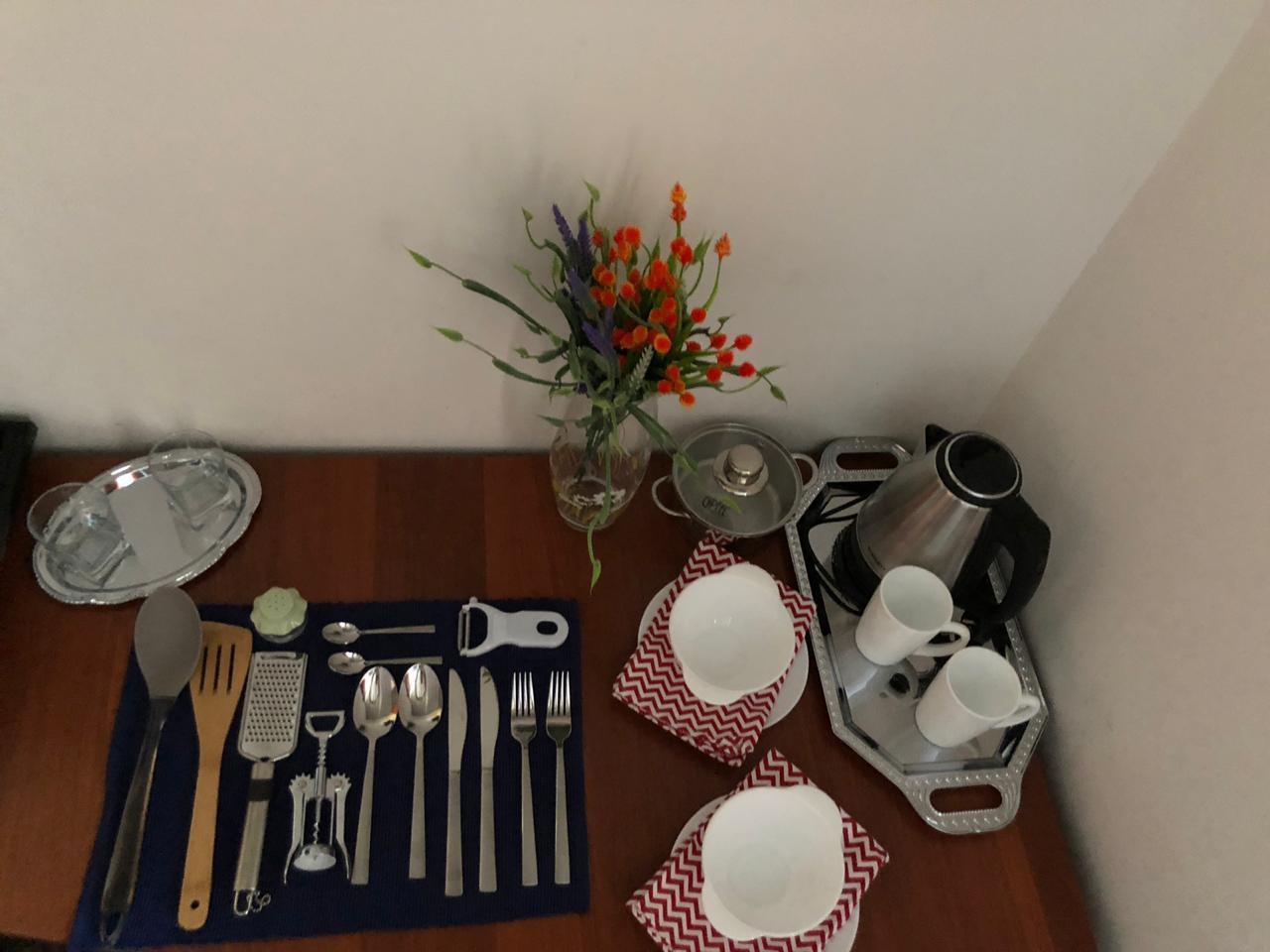 В апартаментах есть телевизор с плоским экраном и собственная ванная комната с душем, феном и бесплатными туалетно-косметическими принадлежностями. Кроме того, в распоряжении гостей холодильник, плита и чайник.