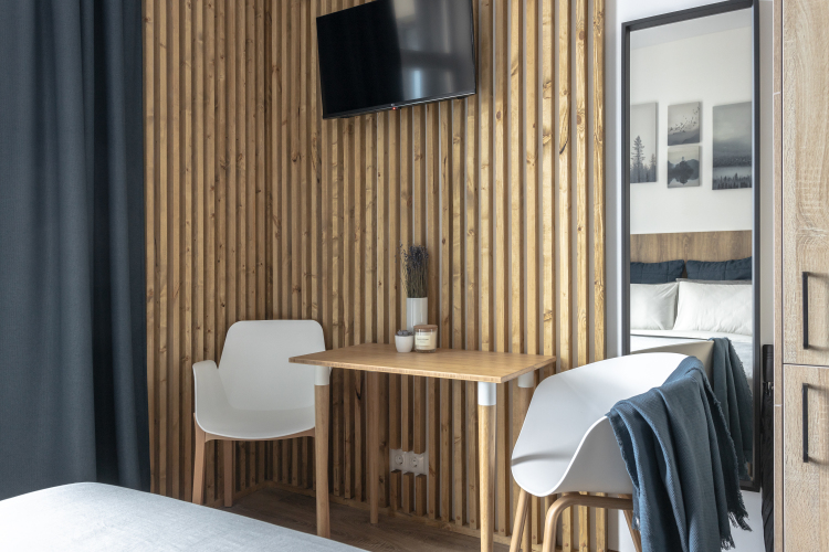 В номере гостей ждут телевизор и халат. Оснащение зависит от выбранной категории номера.