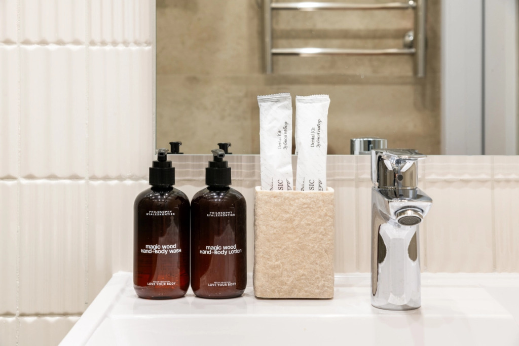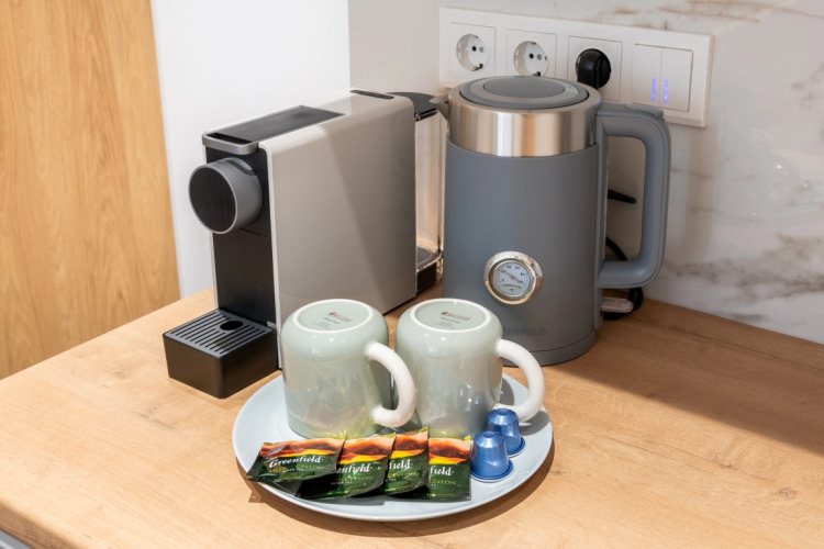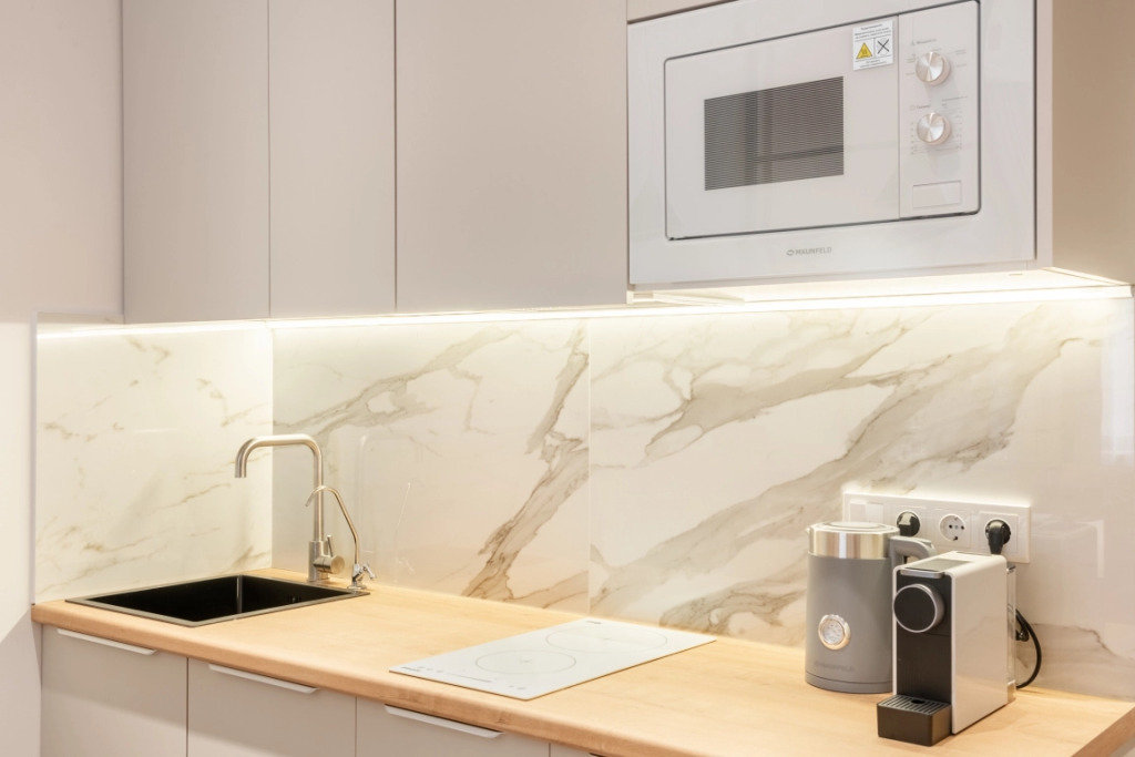 Кухня оборудована встроенной техникой Hansa, Gorenje, Maunfield. Для гостей доступны: Smart TV Full HD LG c приложениями Кинопоиск и Kion, включающие библиотеку фильмов и ТВ-каналы, кровать с ортопедическим матрасом, душевые смесители с термостатом, бесконтактное заселение по электронному замку, чай/кофе при заселении, раскладной диван, лоджия, полотенца банные для рук и ног, столовые приборы, бокалы и посуда, фен, кондиционер, микроволновая печь, посудомоечная машина, стиральная машина с функцией сушки, высокоскоростной интернет, постельное бельё Ikea, утюг и гладильная доска.