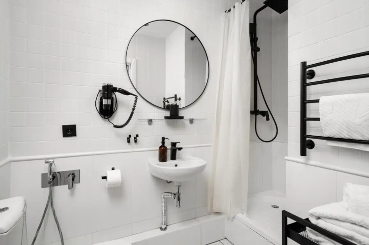 Для проведения досуга в апартаментах есть Wi-Fi, телевизор Smart-TV и книги. В распоряжении гостей также есть холодильник, электрический чайник, электроплита, СВЧ, кофемашина, стиральная машина, фен, утюг, гладильная доска и сушилка для одежды. Для гостей предоставляются полотенца, тапочки, набор гигиенических средств: мыло, шампунь, зубная щётка. В кухонной зоне есть посуда для приготовления и приёма пищи, вода, чай и кофе.