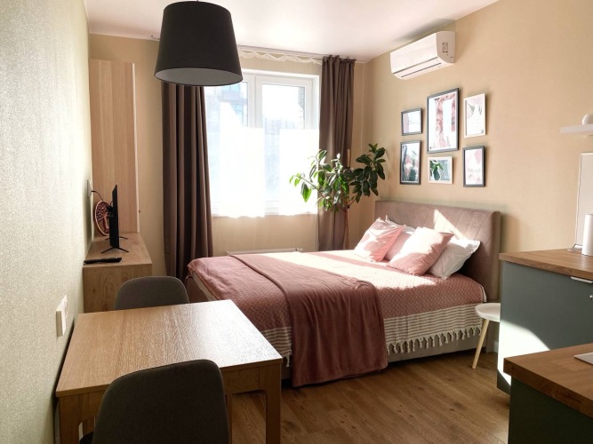 Номер уютно обставлен и оснащён необходимым, чтобы отдохнуть после долгого и насыщенного дня. Имеются телевизор. Перечисленные услуги есть не во всех номерах.
