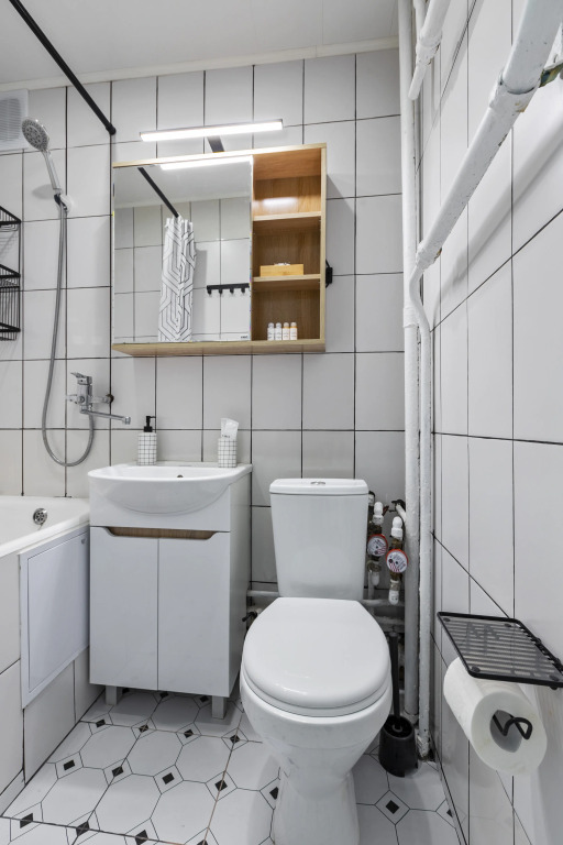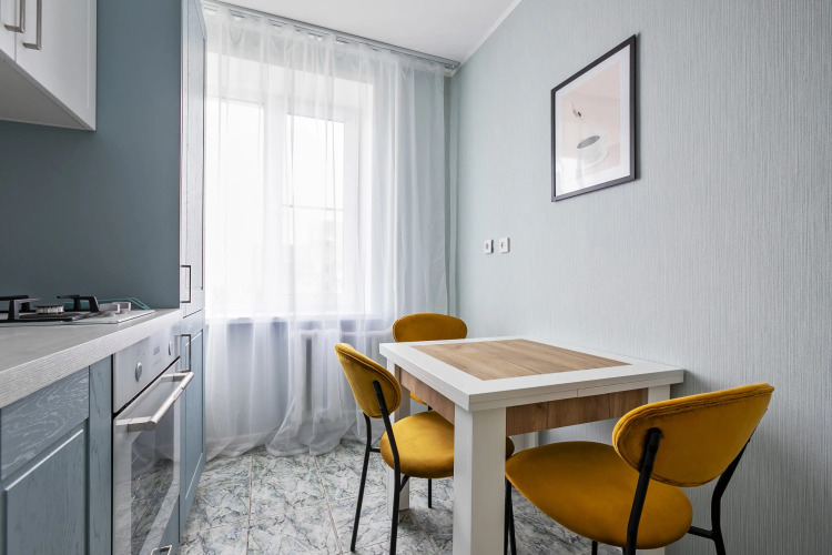 Для гостей предусмотрены удобства: ванна, стиральная машина, фен, утюг, электрический духовой шкаф, посудомоечная машина, полный комплект посуды, двуспальная кровать, раскладной диван, 2 телевизора. Из окон открывается вид на панораму города с Останкинской башней, на золотые купола церкви Торжества Православия.