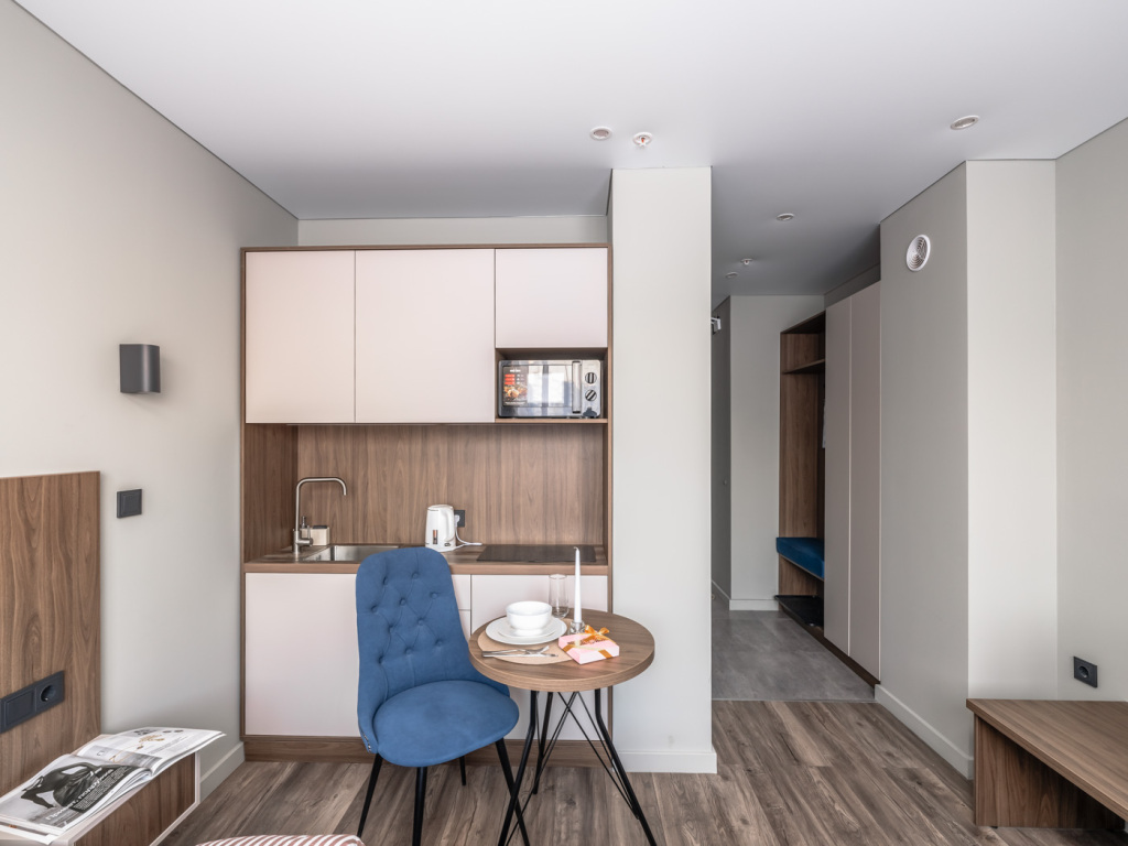 Для тех, кто не представляет отдых без водных удовольствий, есть крытый бассейн. Доступная среда: работает лифт. А ещё в распоряжении гостей гладильные услуги. Сотрудники апартаментов поддержат беседу на русском.
