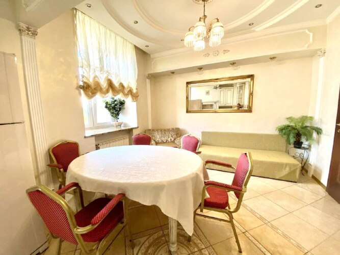 В апартаментах 3 комнаты. Изолированная спальня, изолированная спальня с гостиной зоной, кухня и столовая, совмещённый санузел с джакузи. Спальные места: двуспальная кровать в первой спальне, двуспальная кровать, двуспальный раскладной диван и односпальный диван во второй спальне с гостиной, диван в столовой. Максимальное количество гостей: 6. Площадь: 90 кв.м. Этаж: 2 этаж 9-12-этажного дома, есть лифт. Парковка: во дворе под шлагбаумом, включена в стоимость. Высокоскоростной WiFi, кабельное ТВ, кондиционер, утюг, гладильная доска и сушилка для белья, одноразовые тапочки.