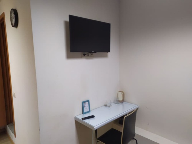 В номере вы найдёте душ, телевизор и тапочки. Оснащение зависит от выбранной категории номера.