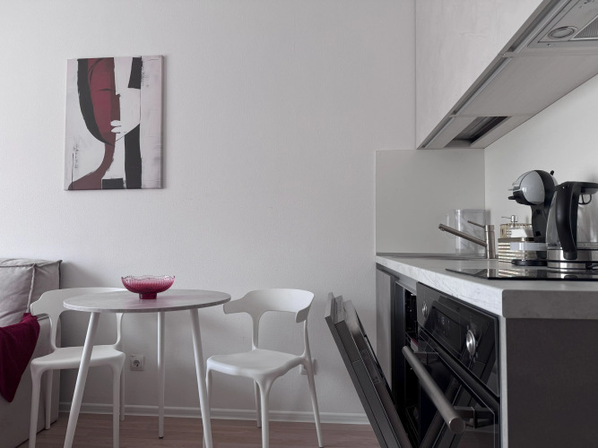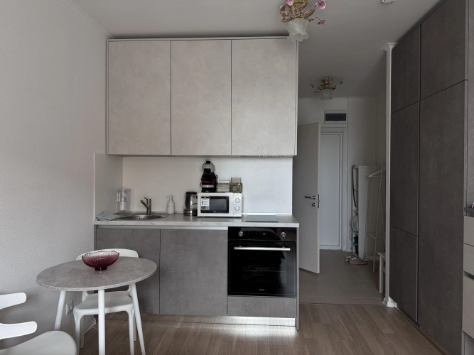 Гостям предоставляются белое постельное бельё и полотенца, стирающиеся в прачечных. Квартира расположена на 7 этаже, из окон открывается вид во двор. Однокомнатная квартира подходит для проживания 1-2 человек. Спальня: двуспальный диван-кровать 180 см на 200 см, шкаф, Wi-Fi, кондиционер, Smart TV.