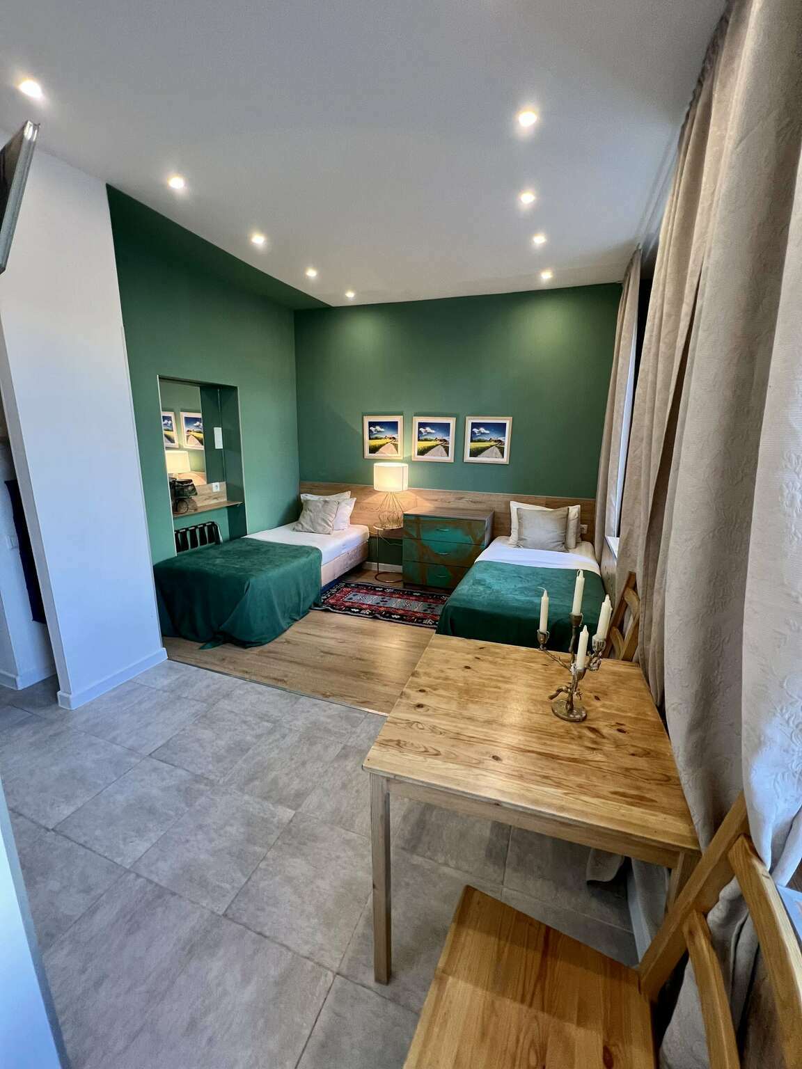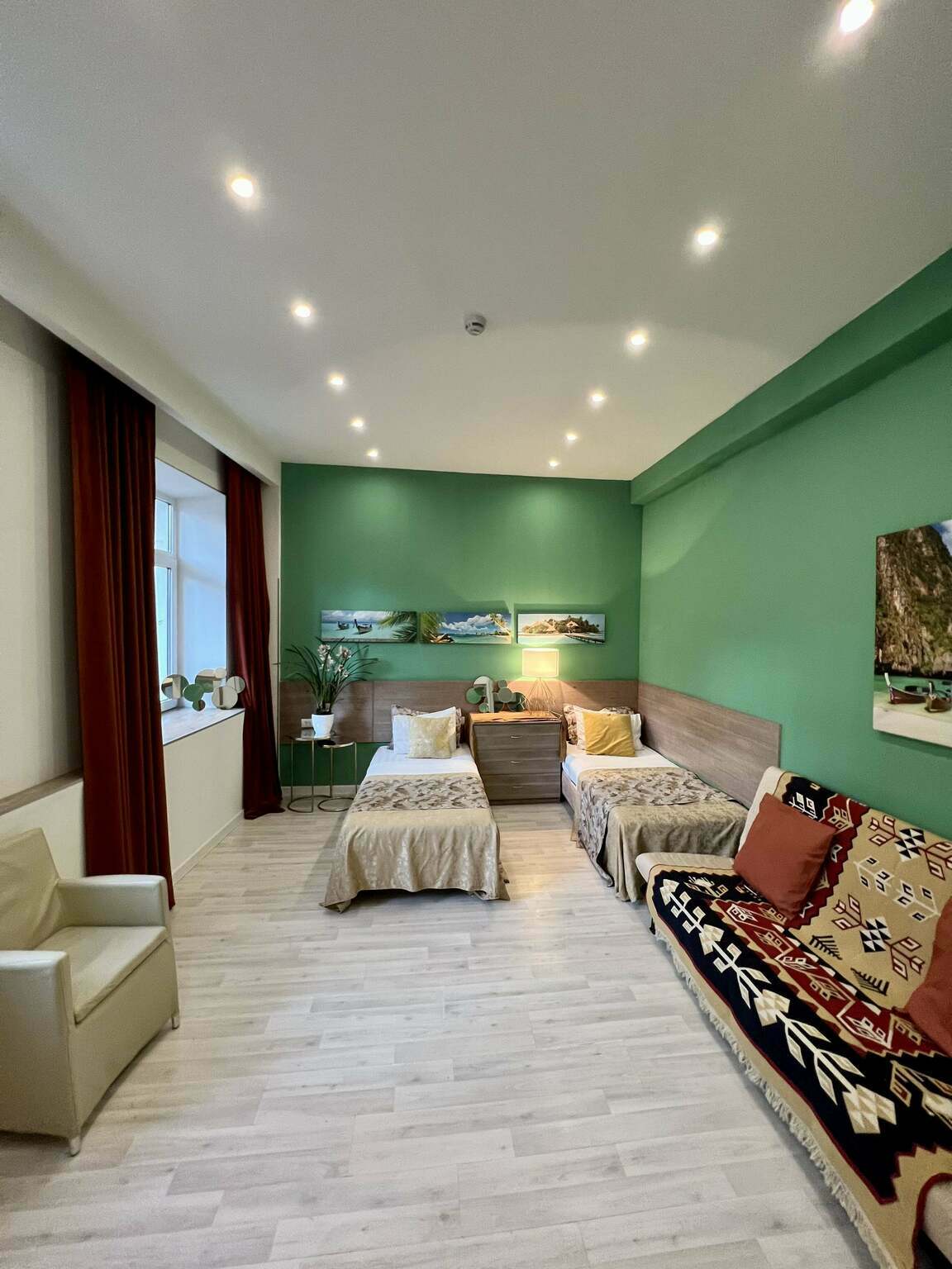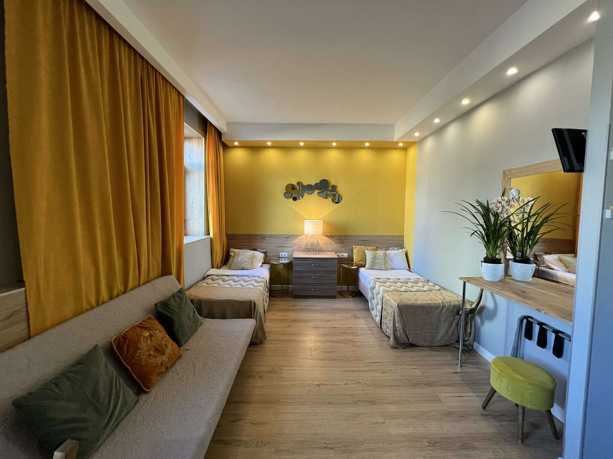 Отель располагает двумя видами размещения: однокомнатными и двухкомнатными апартаментами, оборудованными кухней и техникой, а также стандартными функциональные номерами с современным интерьером и всеми удобствами.