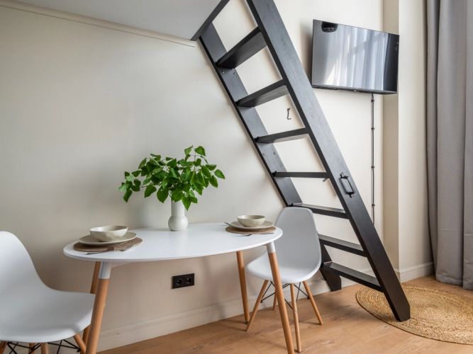 Для удобства гостей в апартаментах подготовлены полотенца, тапочки. Гостям предоставляется набор гигиенических средств: мыло, шампунь, гель для душа, зубной набор. В кухонной зоне есть необходимая для приготовления и приёма пищи посуда. При заселении предоставляется приветственный набор: вода, чай и кофе.