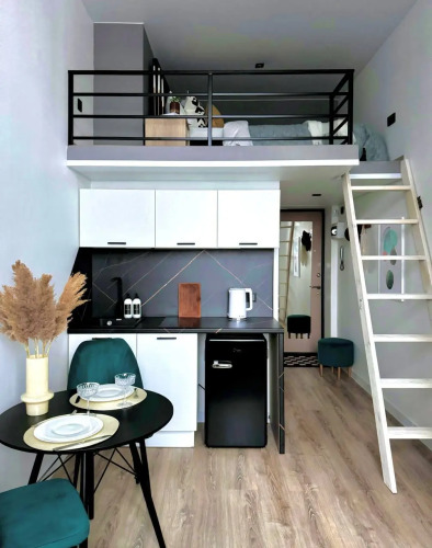 Гостям предлагаются двухуровневые апартаменты общей площадью 20 кв.м. Апартаменты оборудованы бытовой техникой и предметами мебели.
