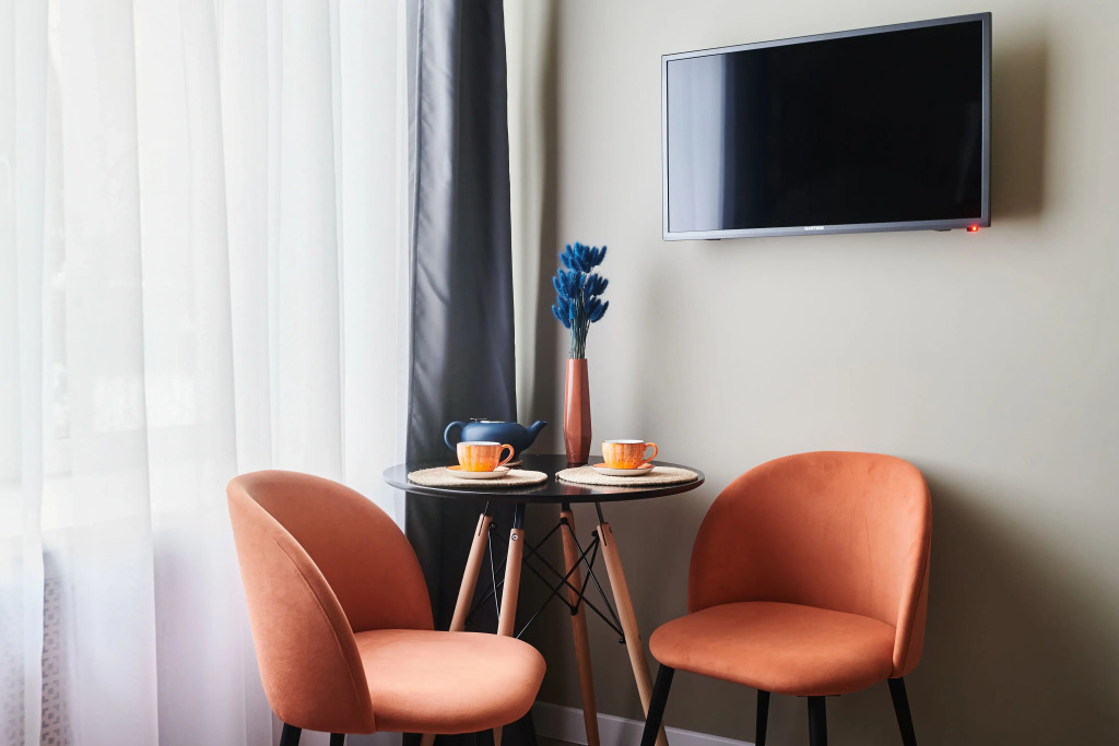Номер уютно обставлен и оснащён необходимым, чтобы отдохнуть после долгого и насыщенного дня. Имеются телевизор. Оснащение зависит от выбранной категории номера.