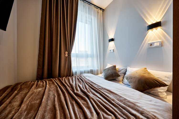 Номер уютно обставлен и оснащён необходимым, чтобы отдохнуть после долгого и насыщенного дня. Имеются телевизор. Оснащение зависит от выбранной категории номера.