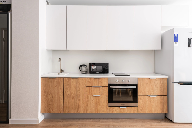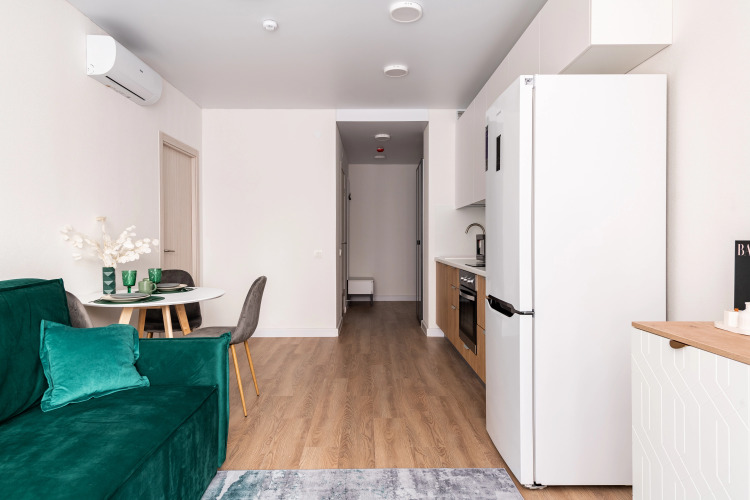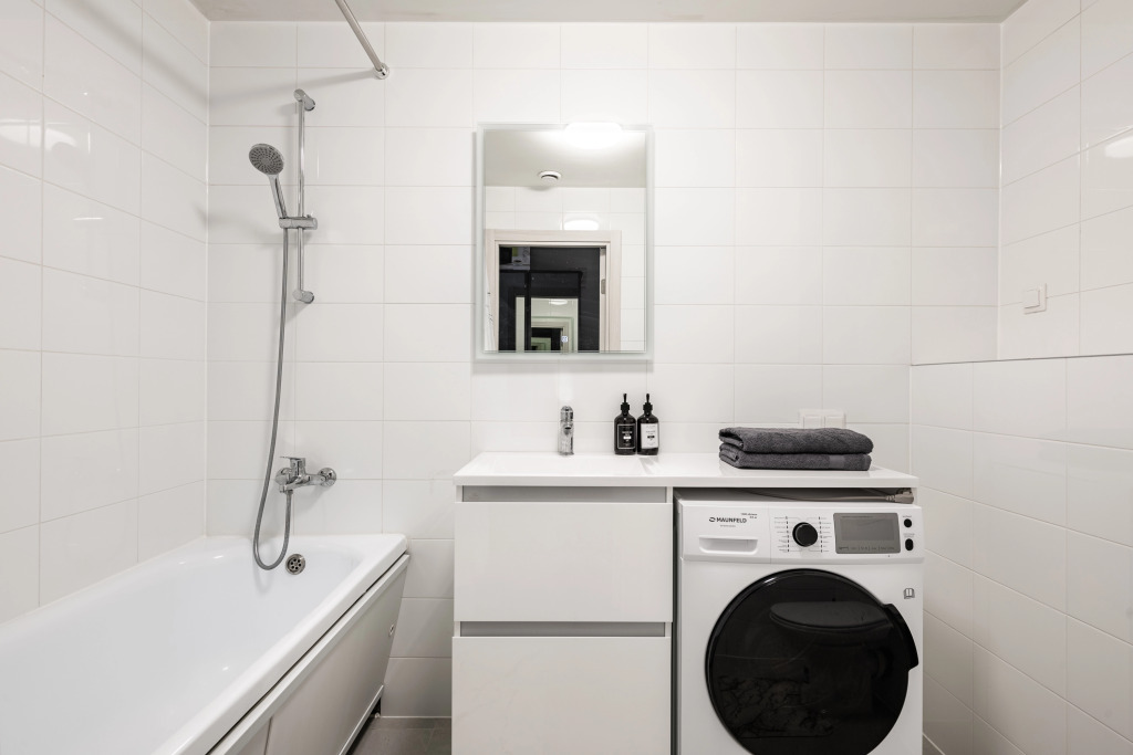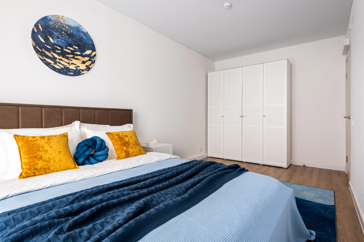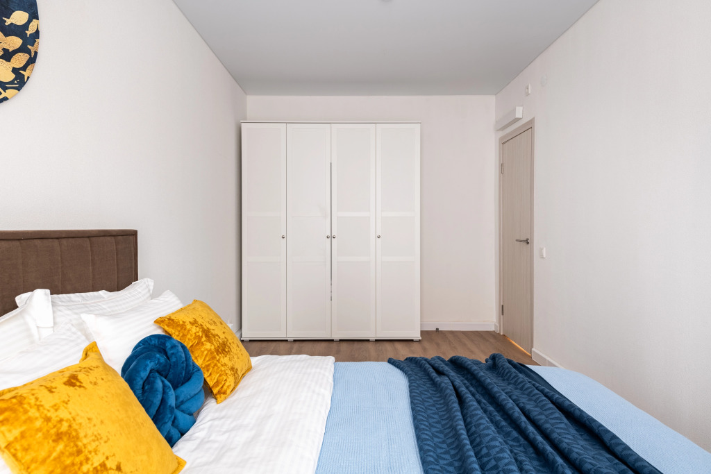 Квартира предназначена для проживания до 4 гостей. В квартире есть Wi-Fi, 2 телевизора с смарт-ТВ, холодильник, плита, фен, утюг, стиральная машина, СВЧ, посудомоечная машина. Предоставляются полотенца, постельное бельё, средства личной гигиены, комплект посуды и столовых приборов. В квартире две кровати с матрасами и шторами блэк-аут, а также раскладной двуспальный диван.