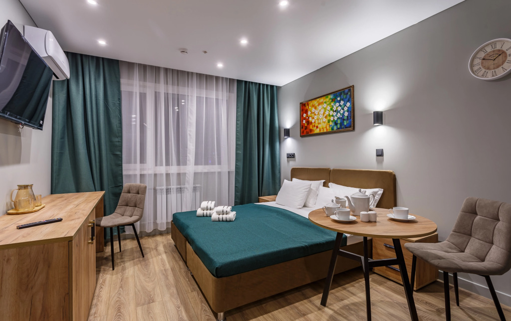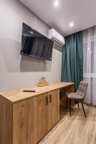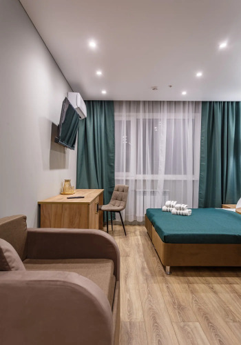 Номер уютно обставлен и оснащён необходимым, чтобы отдохнуть после долгого и насыщенного дня. Имеются телевизор. Перечисленные услуги есть не во всех номерах.