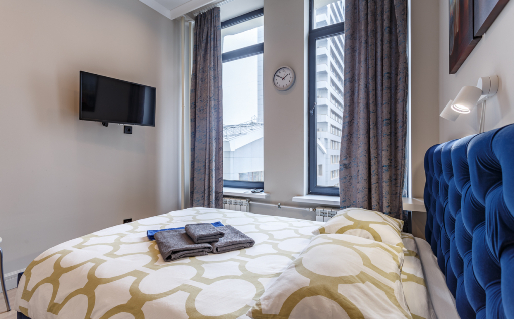 В номере вы найдёте телевизор. Оснащение зависит от выбранной категории номера.
