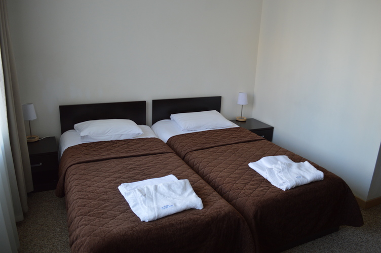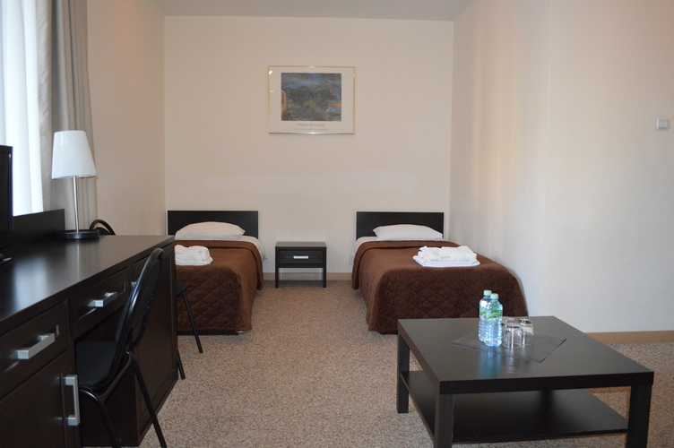 Стандартный номер с двумя раздельными односпальными кроватями и мебелью темного дерева, общая площадь номера составляет до 20 кв. м. К услугам гостей имеются прикроватные тумбочки и все удобства для хранения багажа, предусмотрено рабочее место. В ванной комнате установлена душевая кабина, санузел, предоставляется фен, комплекты полотенец и наборы туалетных принадлежностей.