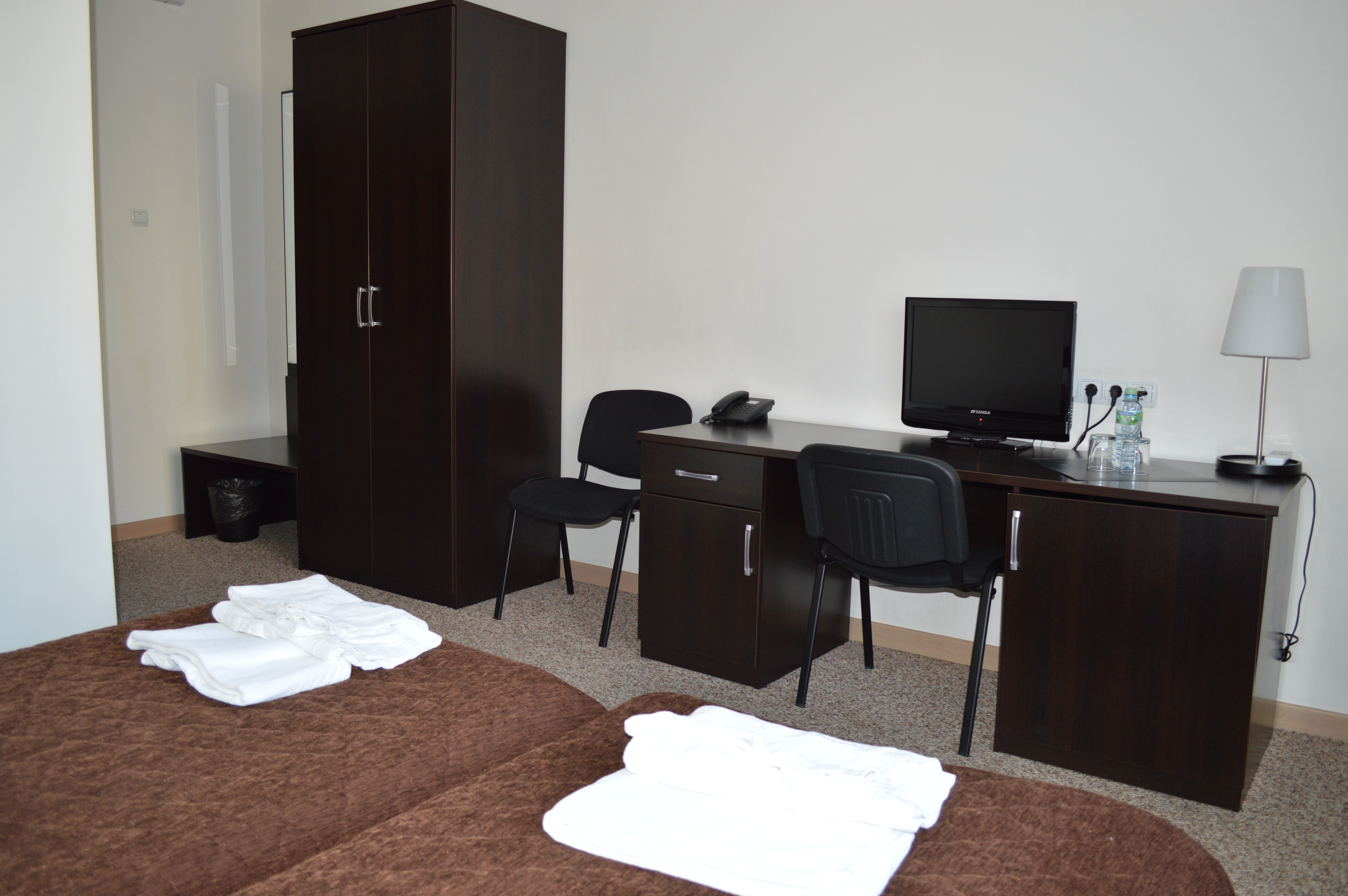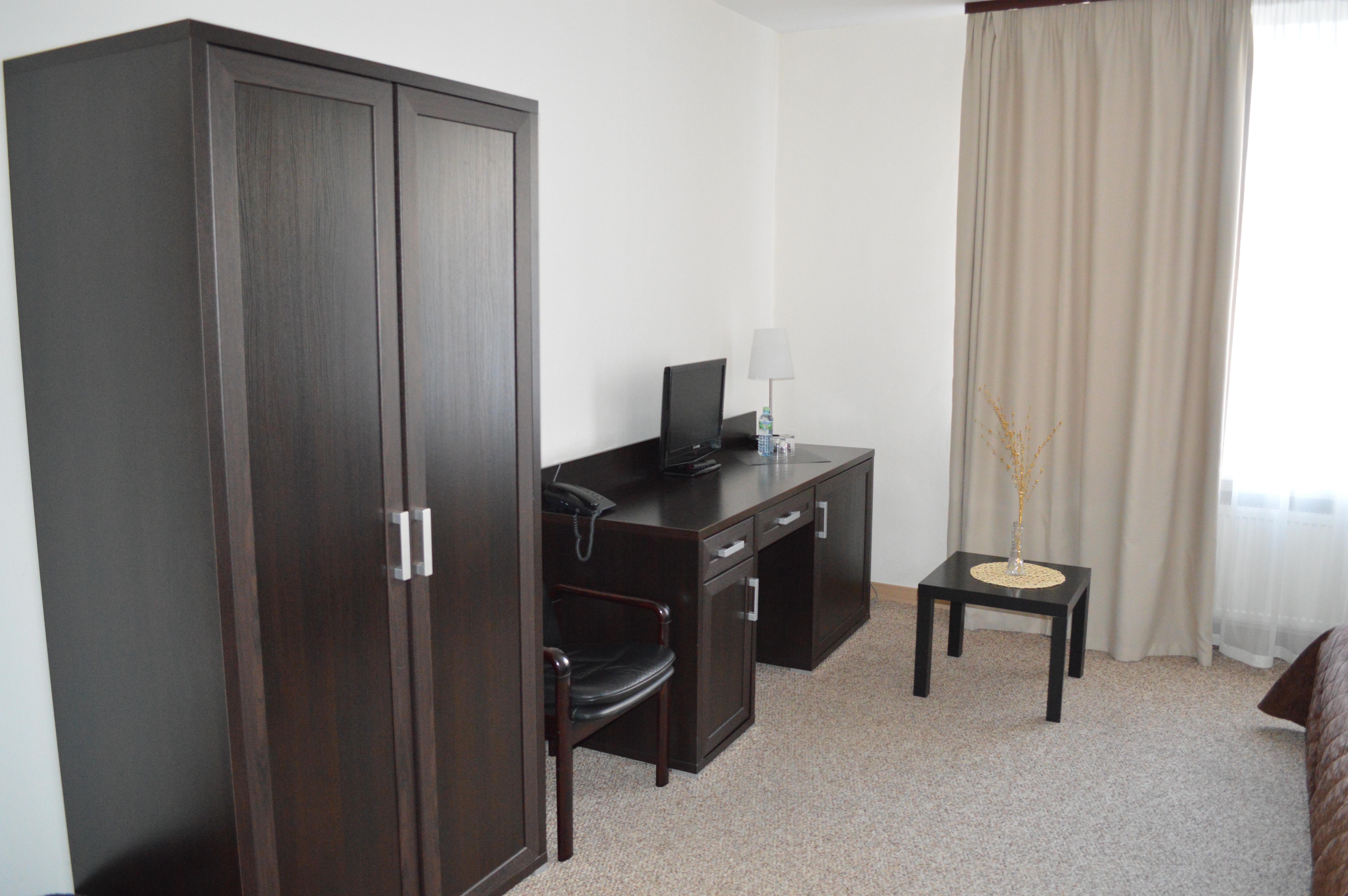 Классический номер площадью до 14 кв. м оборудован односпальной кроватью с прикроватной тумбочкой, проживающие могут воспользоваться удобным письменным столом и вместительным гардеробом, имеется цветной телевизор с плоским экраном, бесплатно предоставляется Wi-Fi доступ в интернет. В ванной комнате установлена душевая кабина, санузел, предоставляется фен, комплект полотенец и набор туалетных принадлежностей.