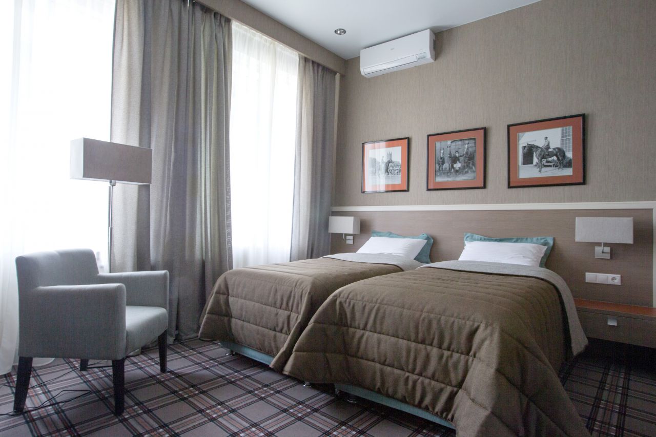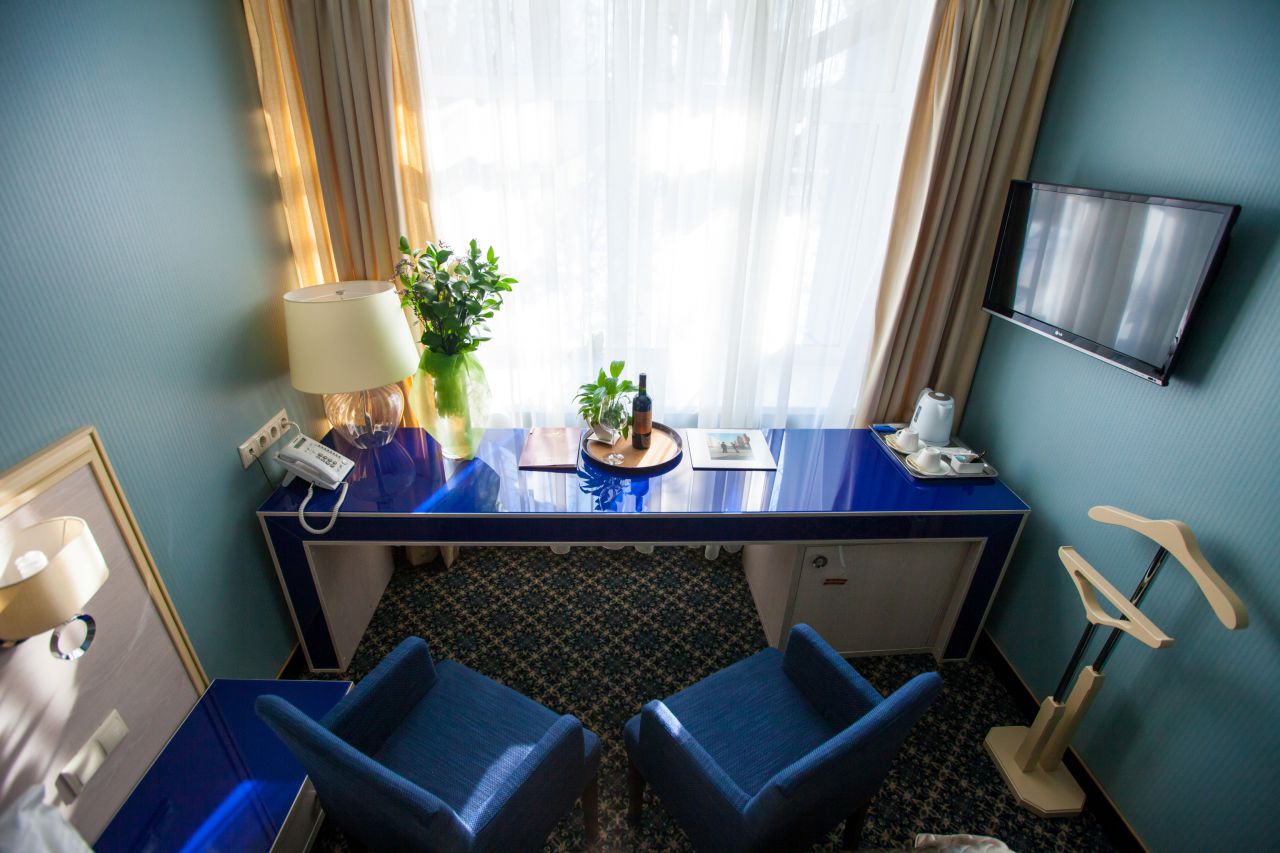 Очень уютный и стильный номер с раздельными кроватями или одной двуспальной кроватью. Размер номера: от 20 м2 до 26 м2. В номере: •электронная система контроля доступа в номер •индивидуальная сплит система для обеспечения свежего воздуха •звукоизоляционные окна и двери •ковровое покрытие •ортопедические матрацы и антиаллергенные подушки •телефон с прямой международной линией •доступ в интернет (Wi-Fi, выделенный канал) •спутниковое телевидение