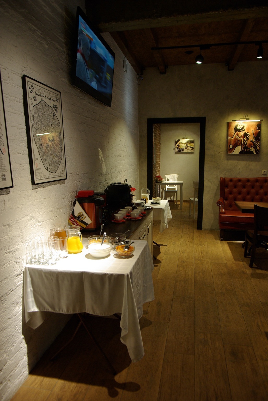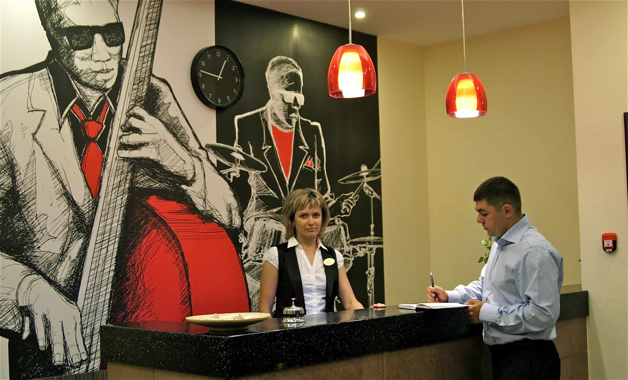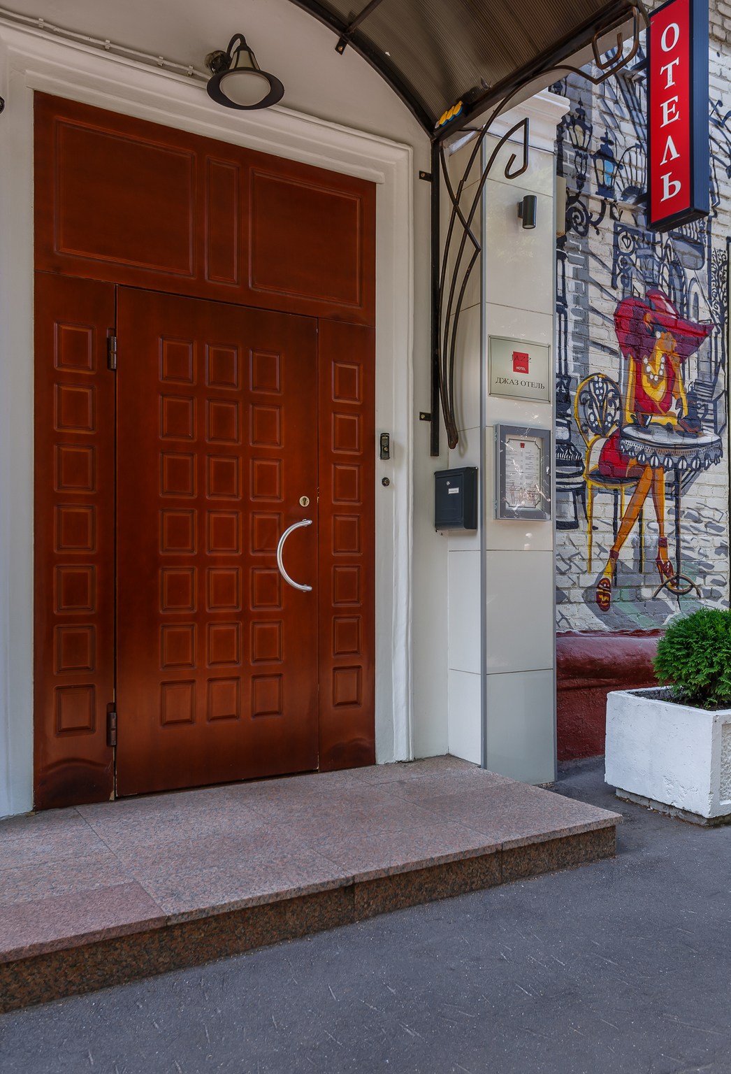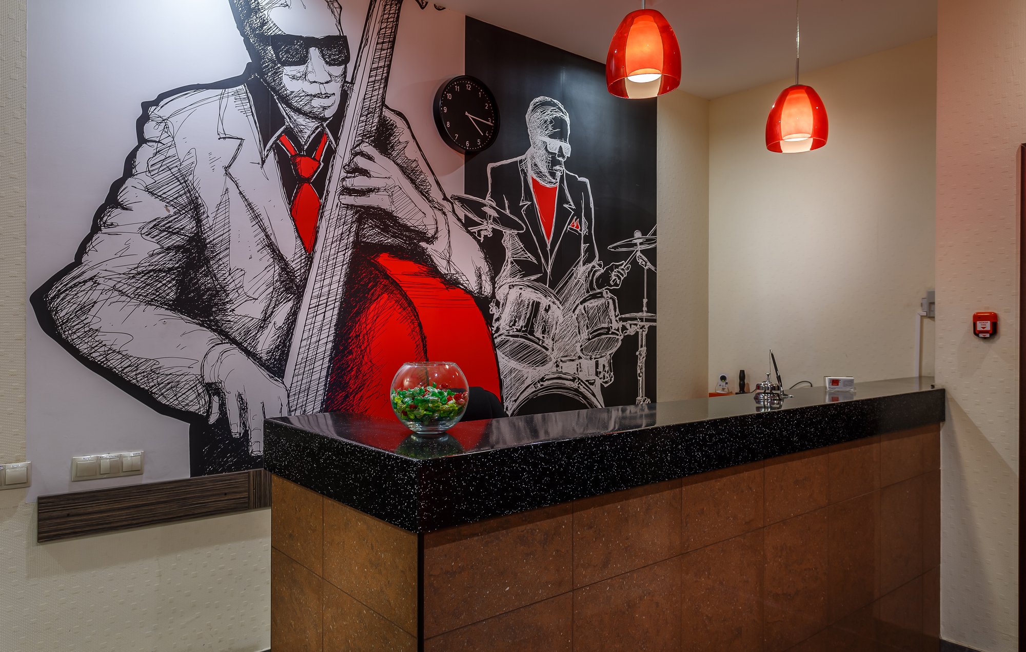 Интерьер гостиницы - это сочетание гармонии, простоты и оригинальности. Стены коридора украшают различные картины на тему джаза, а в номерах вы найдете репродукции картин известных художников.