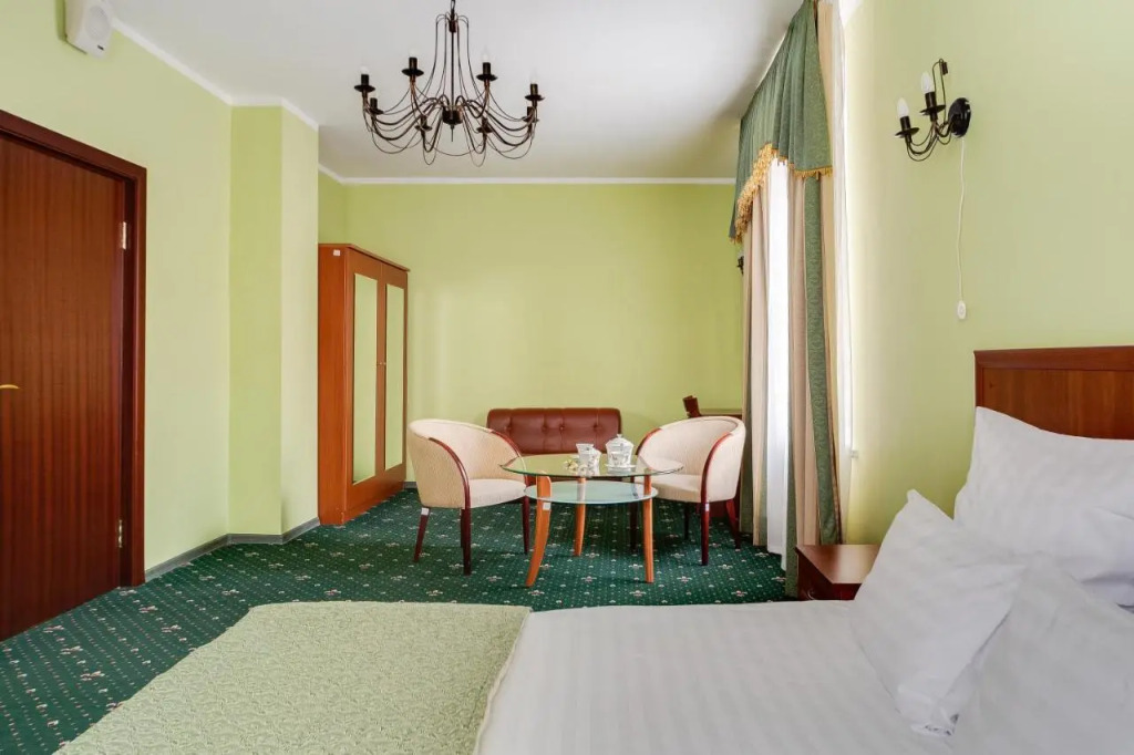 В номере вы найдёте телевизор и халат. Оснащение зависит от выбранной категории номера.