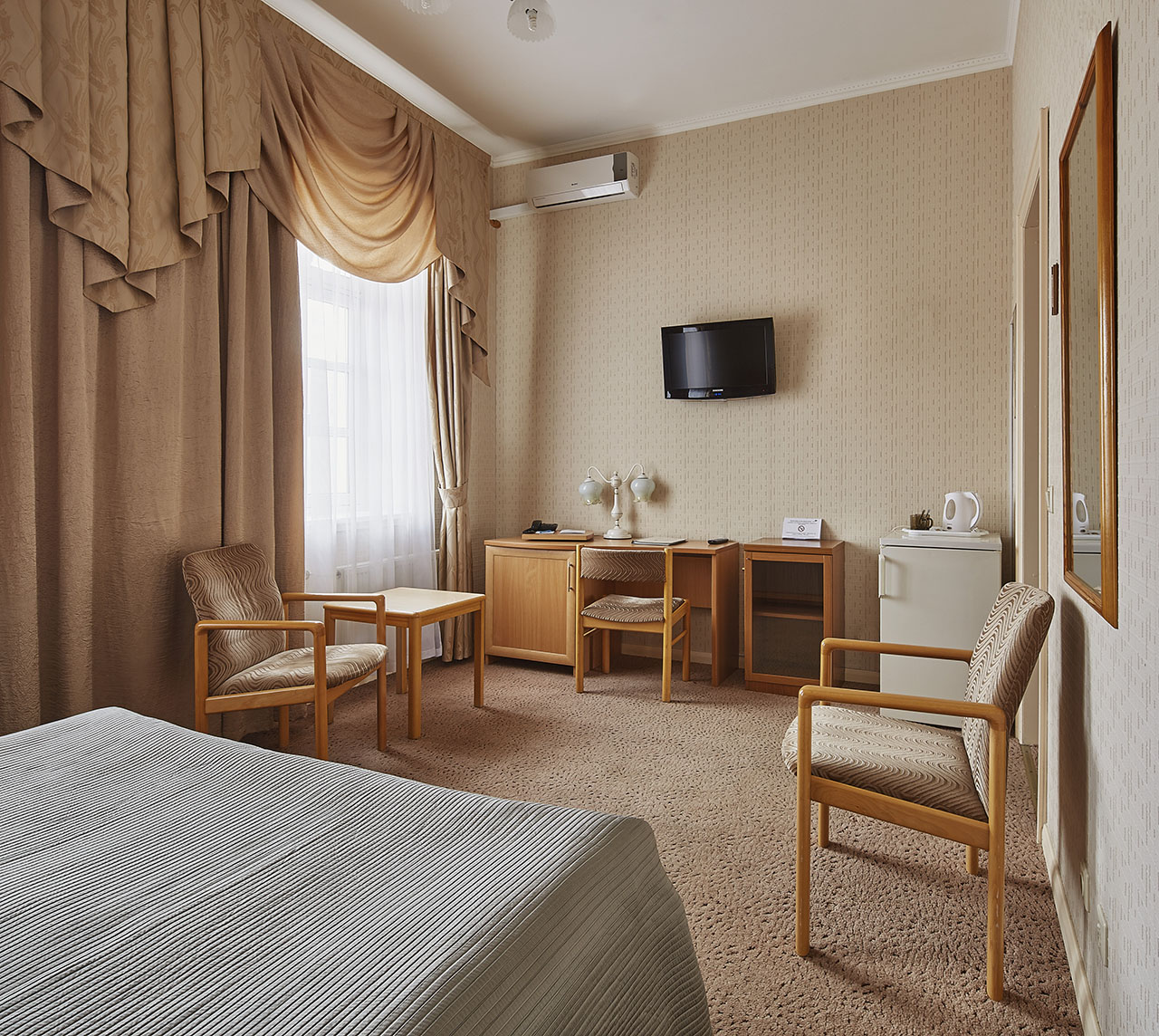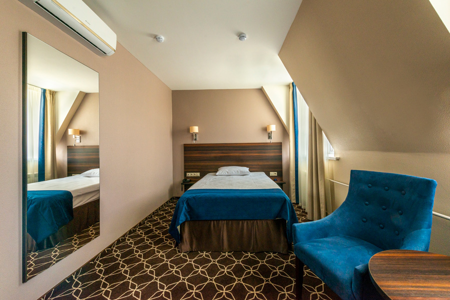 К услугам гостей 63 комфортабельных номера различных категорий, кафе, а также бесплатная охраняемая парковка и WiFi на всей территории гостиницы.