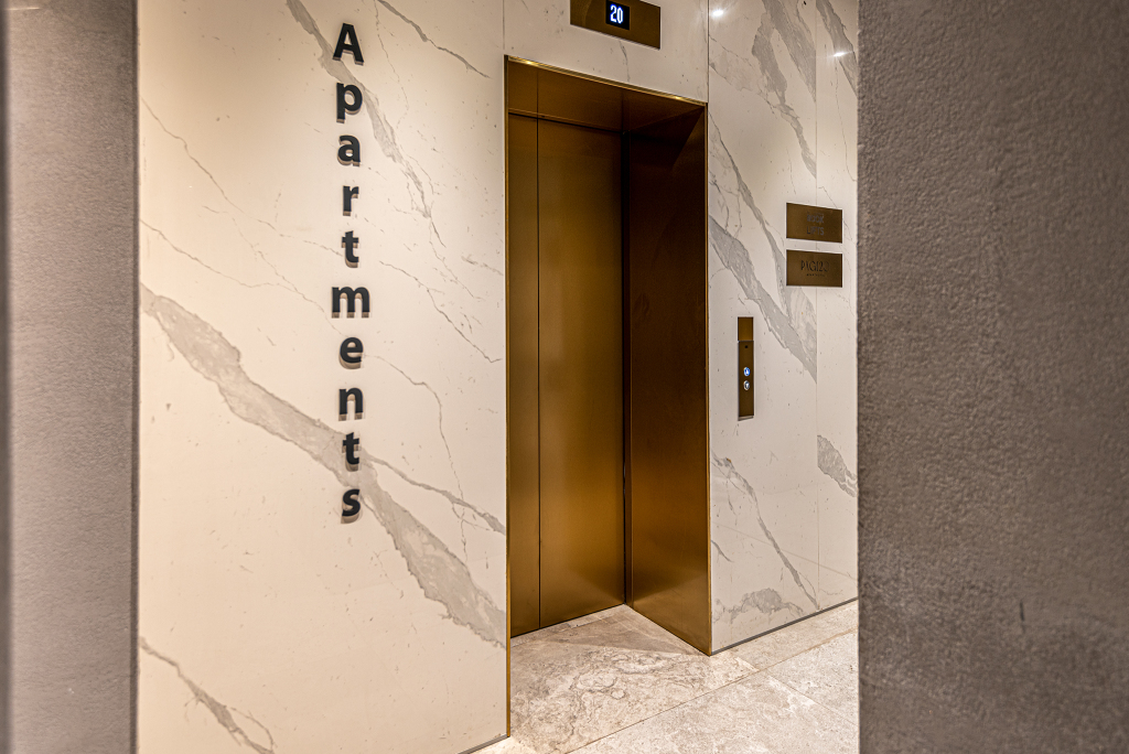Работает стойка регистрации с консьерж-сервисом 24/7, охрана, есть отдельный лифт к апартаментам.
