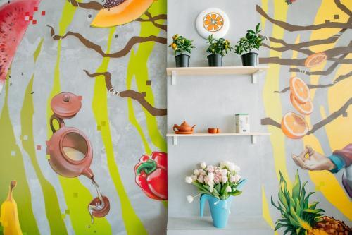 Полностью оборудованная общая кухня укомплектована холодильником, плитой, микроволновой печью, электрическим чайником и кофеваркой. Можно бесплатно выпить чай или кофе, есть разные крупы. Стойка регистрации работает круглосуточно. По запросу предоставляем сейф и услуги прачечной.