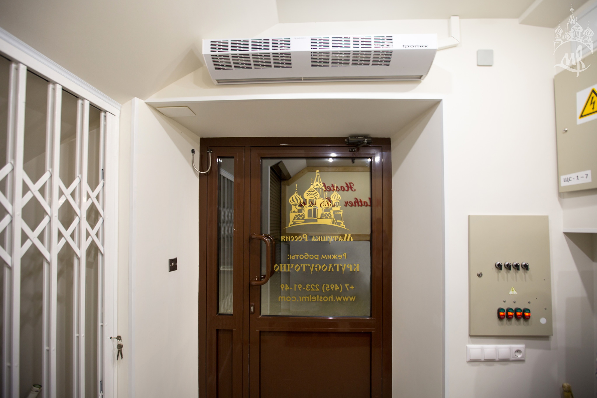 Бизнес-центр Калитники. Есть вывеска с названием хостела. 3-й подъезд. Этаж 1-й. Кнопка для звонка администратору.