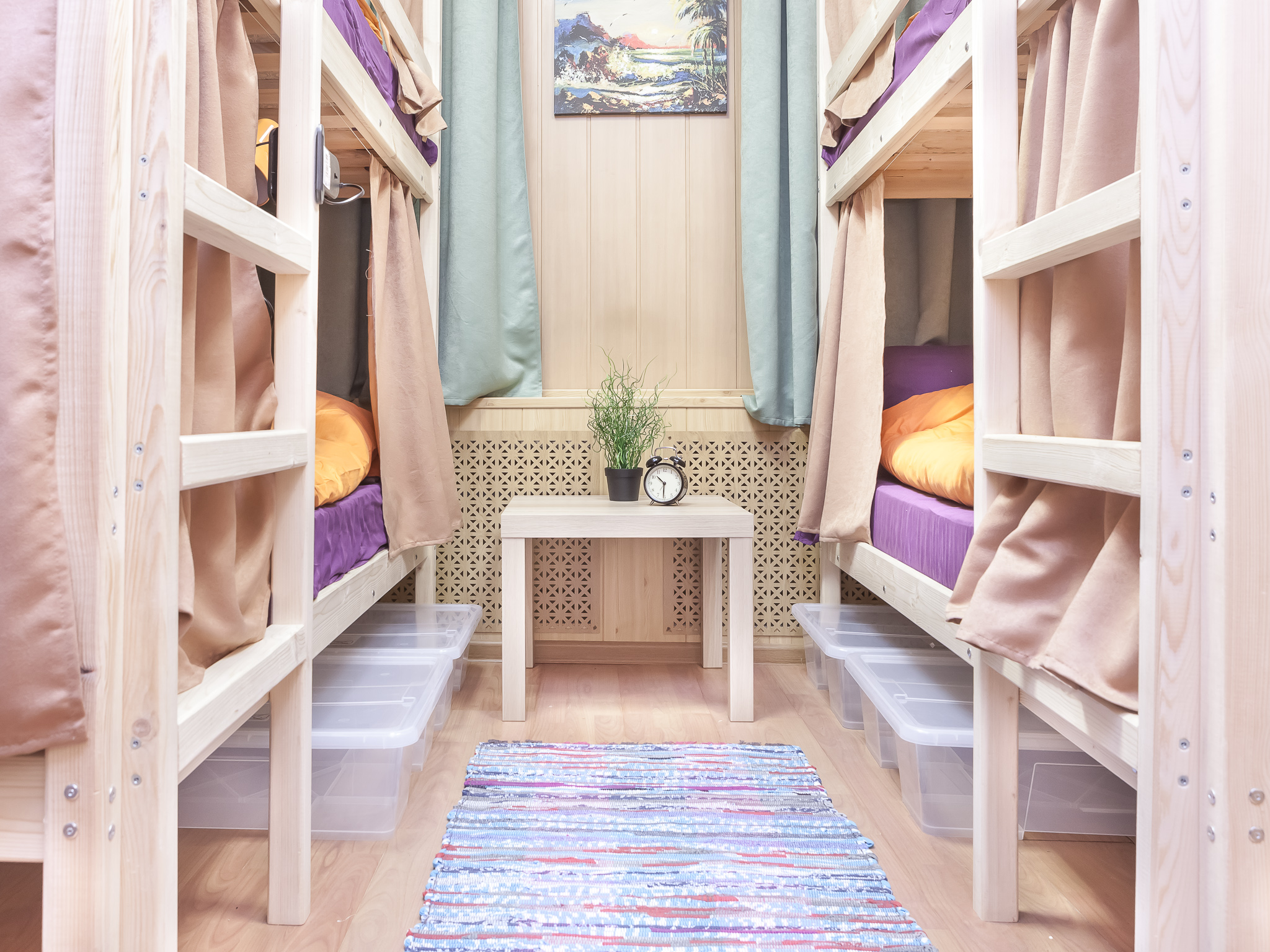 В хостеле действует сухой закон, курение запрещено. Ресепшн работает круглосуточно, стоимость места – от 350 руб. в сутки. Комнаты имеют разное количество коек, размещение – посуточное или помесячное.