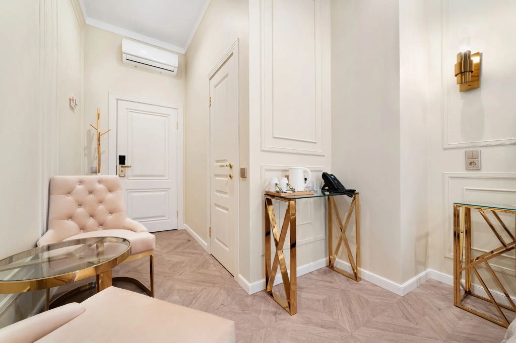 В номере вы найдёте телевизор. Оснащение зависит от выбранной категории номера.