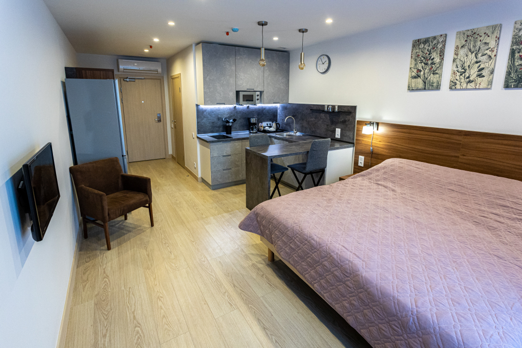 Удобно для гостей с ограниченными возможностями: на верхние этажи гостей поднимает лифт. Гостям доступны и другие услуги. Например, гладильные услуги. Персонал апартаментов говорит на русском.