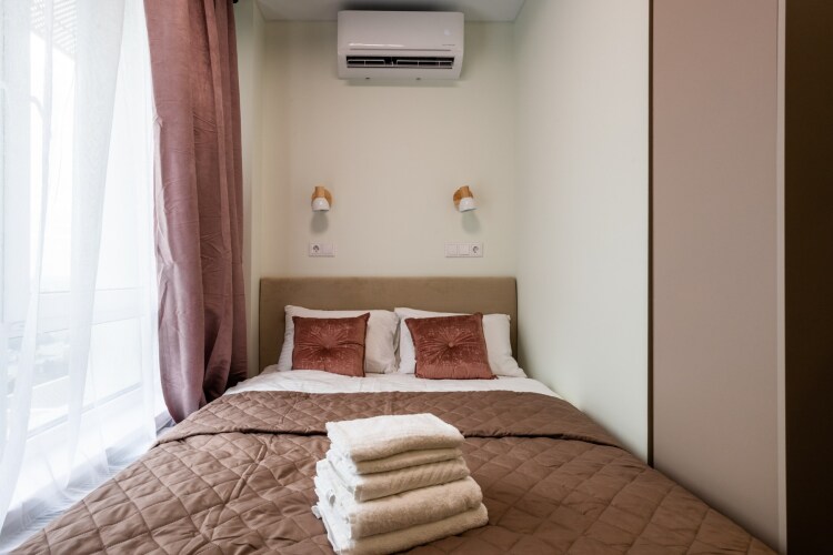 Номер уютно обставлен и оснащён необходимым, чтобы отдохнуть после долгого и насыщенного дня. Имеются телевизор. Перечисленные услуги есть не во всех номерах.