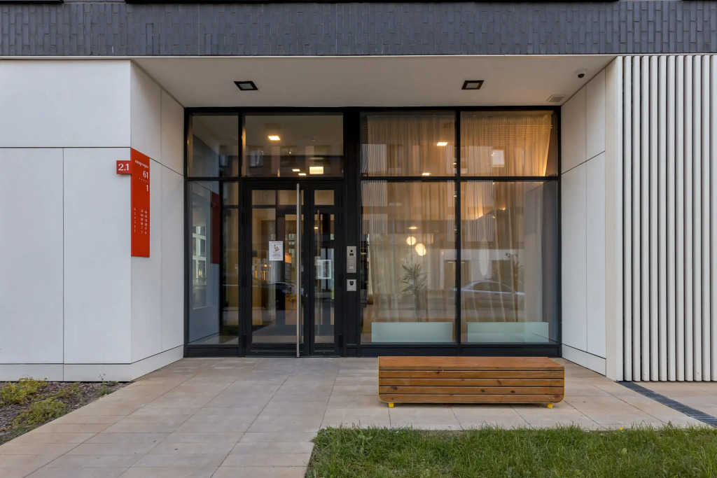 Въезд на автомобиле на территорию платный, расстояние — 1 км от въезда до апартментов.