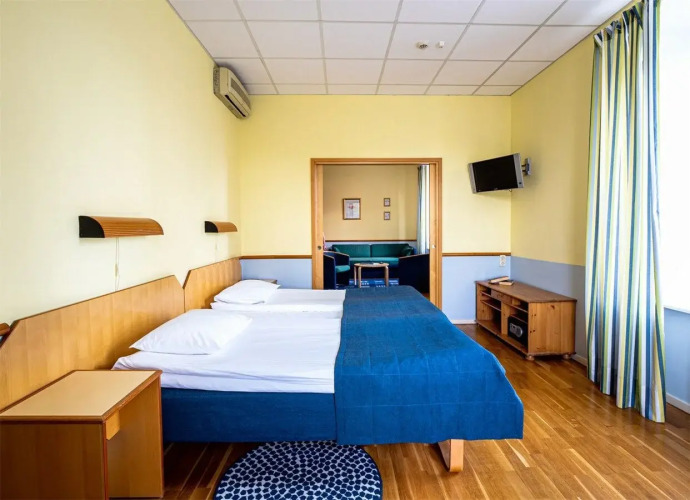 Номера категорий «небольшой одноместный стандарт» и «двухместный улучшенный номер» расположены в историческом корпусе без лифта.