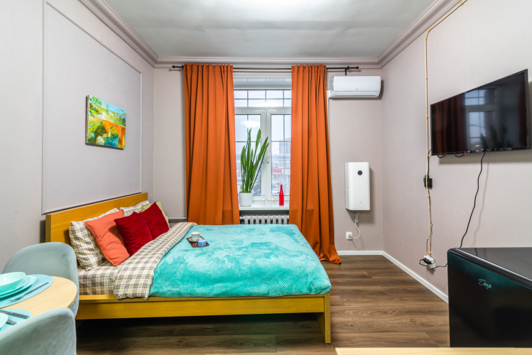 Номер уютно обставлен и оснащён необходимым, чтобы отдохнуть после долгого и насыщенного дня. Имеются телевизор. Оснащение зависит от выбранной категории номера.