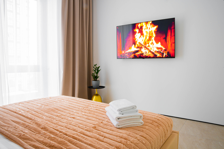 В номере вы найдёте телевизор. Оснащение зависит от выбранной категории номера.