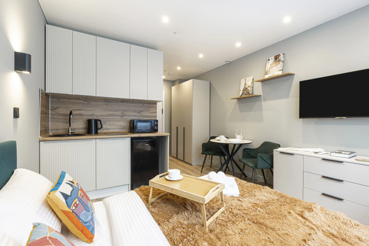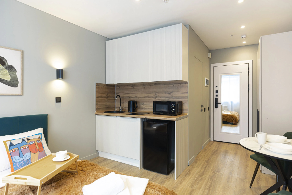 Сотрудники апартаментов поддержат беседу на английском и русском.