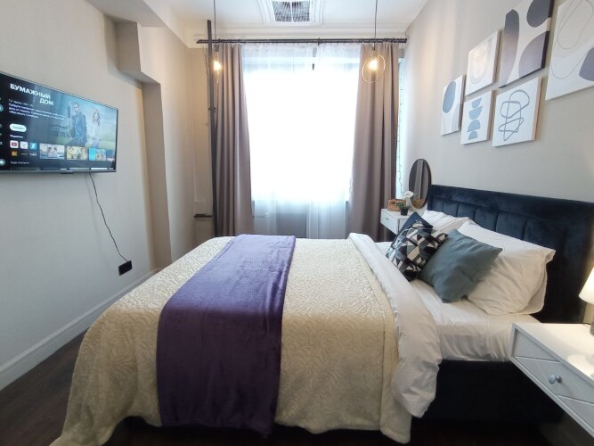 Номер уютно обставлен и оснащён необходимым, чтобы отдохнуть после долгого и насыщенного дня. Имеются телевизор. Перечисленные услуги есть не во всех номерах.