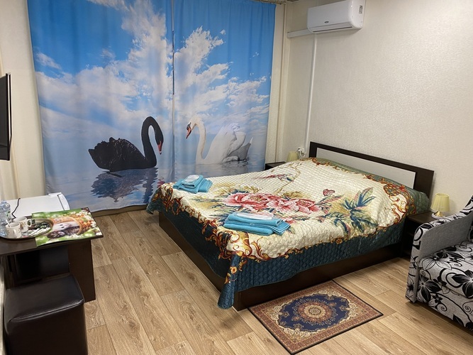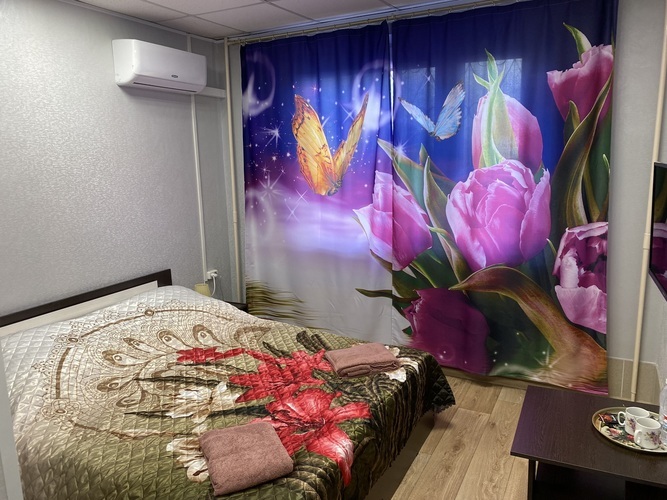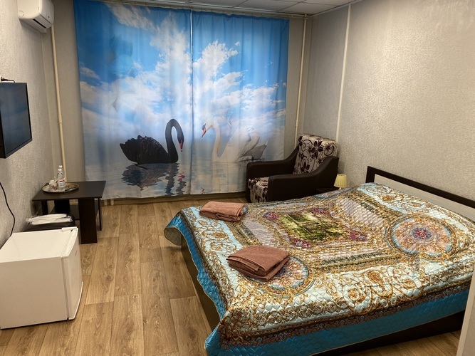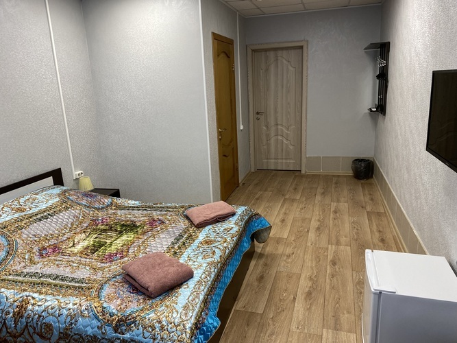 Номер укомплектован всем необходимым для удобного и комфортного пребывания наших гостей. В номере имеются санузел с душем, раковиной и унитазом, кондиционер, телевизор с кабельным телевидением. Вся мебель, сантехника, телевизоры и кондиционеры новые. Номер Комфорт+ дополнительно оснащен мини-холодильником и креслом-кроватью. Гостям в номерах бесплатно предлагаются чай, кофе и бутилированная питьевая вода. В стоимость проживания входят: одноразовые тапочки, гель для душа, шампунь, зубной набор.