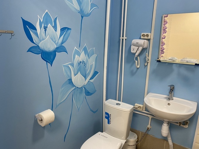 В отеле выполнен свежий ремонт, установлена новая сантехника, мебель, телевизоры, кондиционеры, холодильники. Все номера имеют собственные санузлы с душем, раковиной, унитазом.