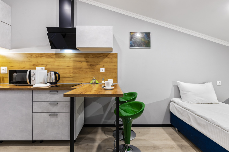 В апарт-отеле работает бесплатный Wi-Fi и телевидение. Имеется полностью оборудованная кухня: плита, микроволновая печь, холодильник и посуда. Предоставляется белое постельное бельё из страйт-сатина и мягкие белые полотенца. В ванной комнате есть средства гигиены: гель для душа и шампунь, одноразовые зубные щётки и паста. Гостям доступен приветственный чайный набор.