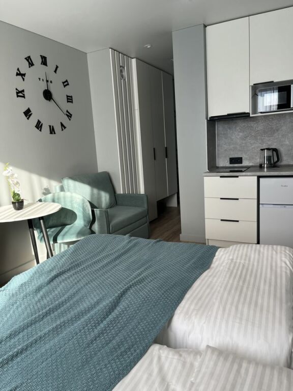 Также для гостей в апартаментах: спа-центр. Любителям спорта подготовили фитнес-центр. Здесь будем баловать себя водными процедурами: есть крытый бассейн. Удобно для гостей с ограниченными возможностями: на верхние этажи гостей поднимает лифт.