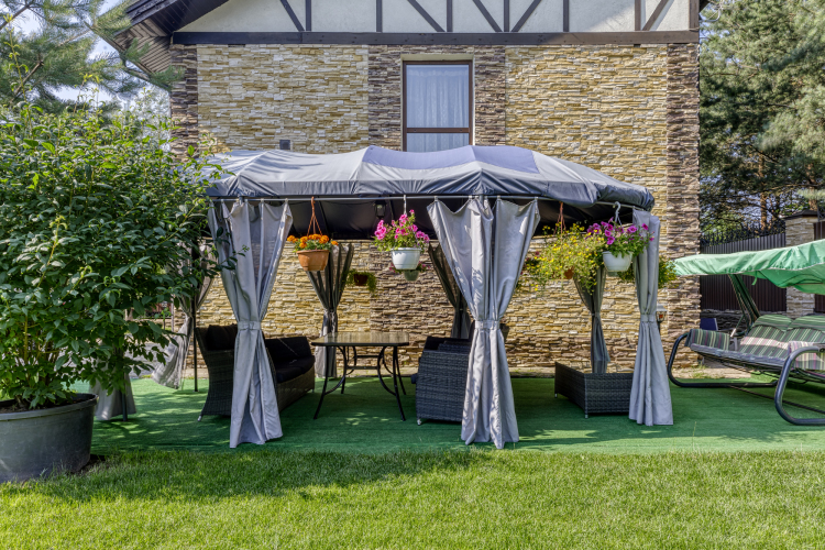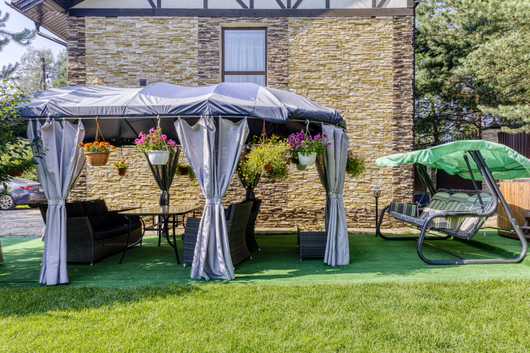 К гостевому дому есть Садовый шатер - Диванная зона на 10 чел.