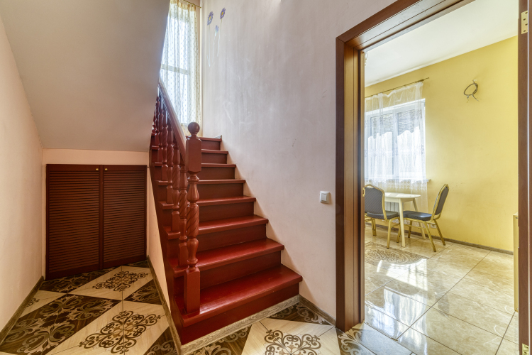 На первом этаже расположена кухня- столовая 18 кв.м. на 8 -10 человек с телевизионной зоной .