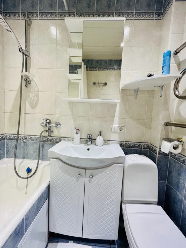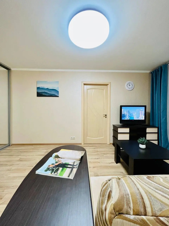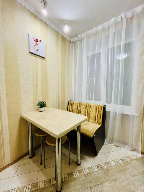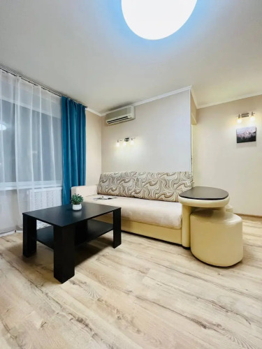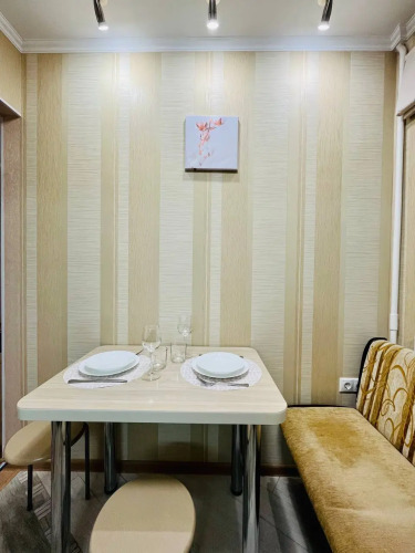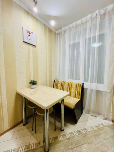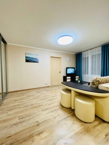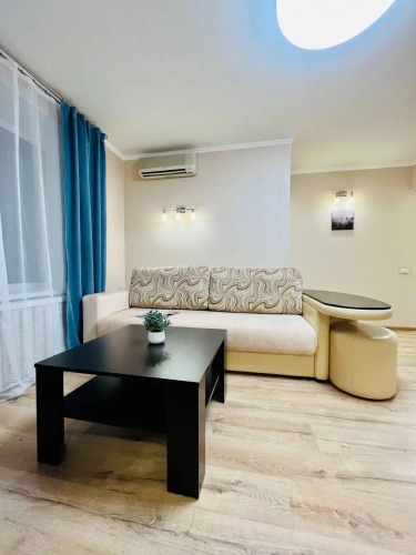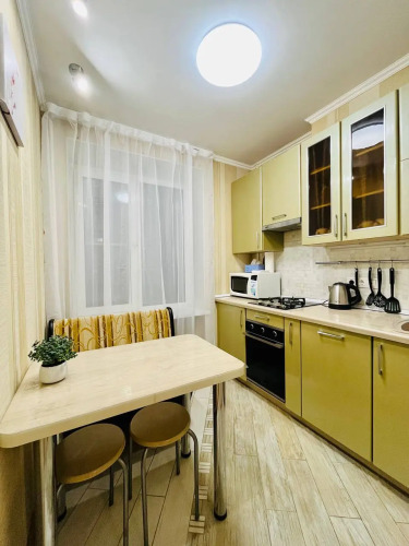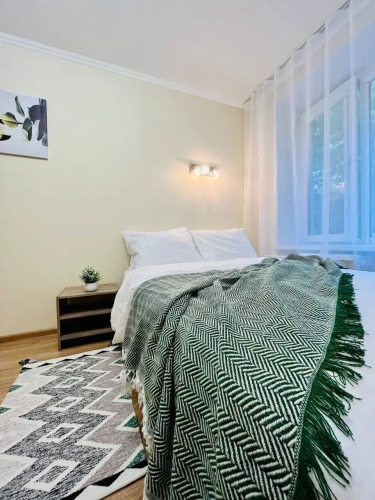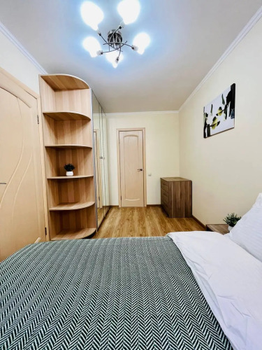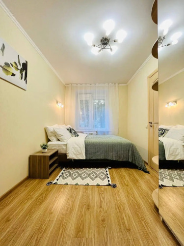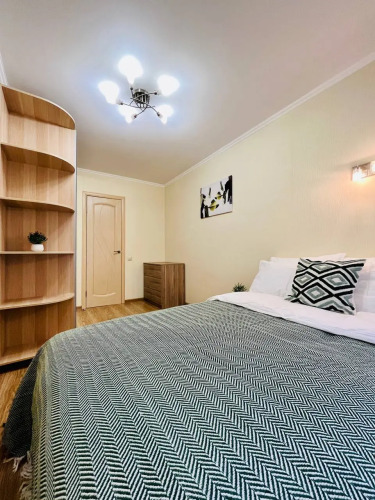 Квартира оснащена необходимым для комфортного проживания и подходит для размещения до 4 гостей. В спальне находится двуспальная кровать с ортопедическим матрасом размером 140x200 см. В гостиной установлен раскладной двуспальный диван размером 150x200 см. Доступен высокоскоростной Wi-Fi и цифровое телевидение.