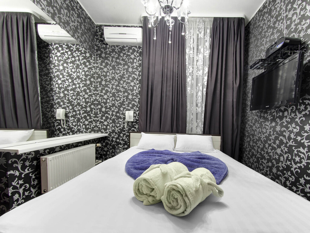 В номере вы найдёте телевизор и халат. Оснащение зависит от выбранной категории номера.