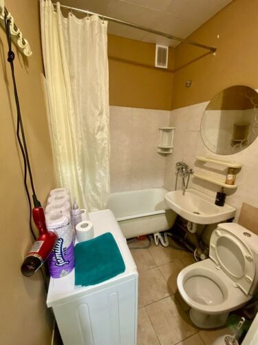 Квартира рассчитана на размещение до 5 гостей и оснащена четырьмя раздельными спальными местами: двуспальная кровать с матрасом, раскладной диван и две односпальные кровати. В распоряжении гостей: плазменный телевизор, Wi-Fi, постельное бельё, полотенца, подушки и одеяла. На кухне в распоряжении гостей: плита, холодильник, микроволновка, чайник, посуда и техника для приготовления блюд. Также есть стиральная машина, сушилка, утюг и гладильная доска.
